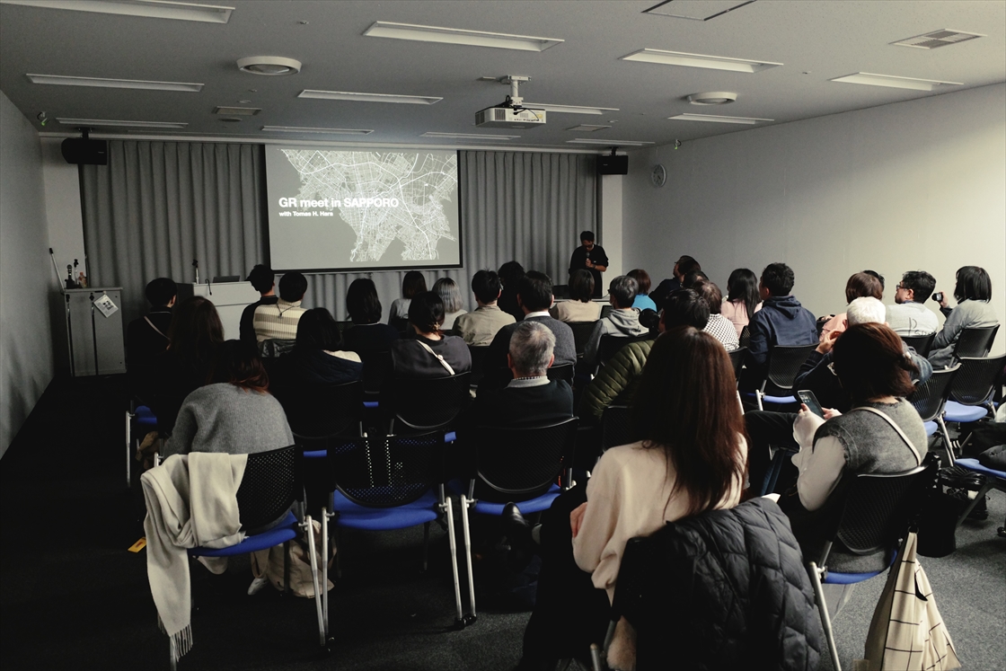 「GR meet in SAPPORO」は12月6日(土)に札幌駅からほど近くにある「ACU SAPPORO」という会場で開催しました。ゲスト写真家はTomas H. Hara(トーマス・ハラ)さん。トーマスさんは初北海道だったそうで、少し前からこのイベントを楽しみにしていたとのこと。イベント開催の数日前に札幌市内で雪が降ったこともあり、イベント当日も札幌市内には雪が残っていました。