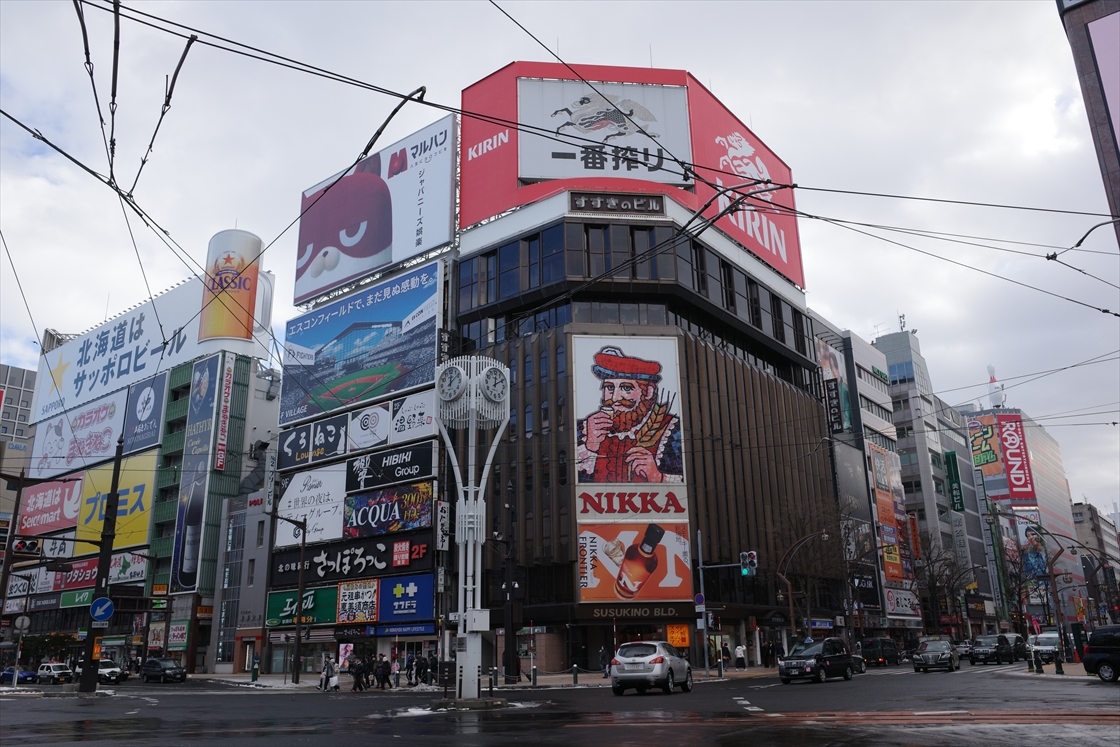 「まずは、みなさんと、すすきの交差点にあるニッカウイスキーの看板を目指しましょう」というトーマスさんに、みんなでついていくことに。