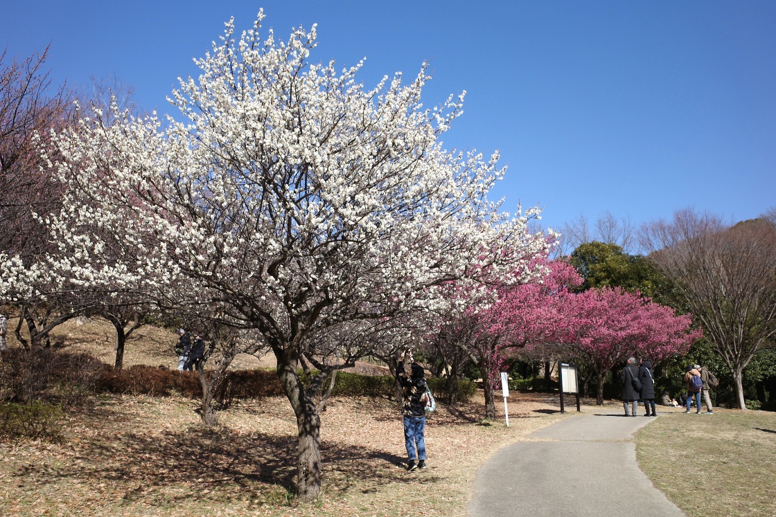 People visiting the park stopped to enjoy the plum blossoms, pointing their smartphones and cameras at them. It's a recurring seasonal sight, but isn’t it nice to view and photograph the blooming flowers again, just as they did a year ago, confirming the start of spring?